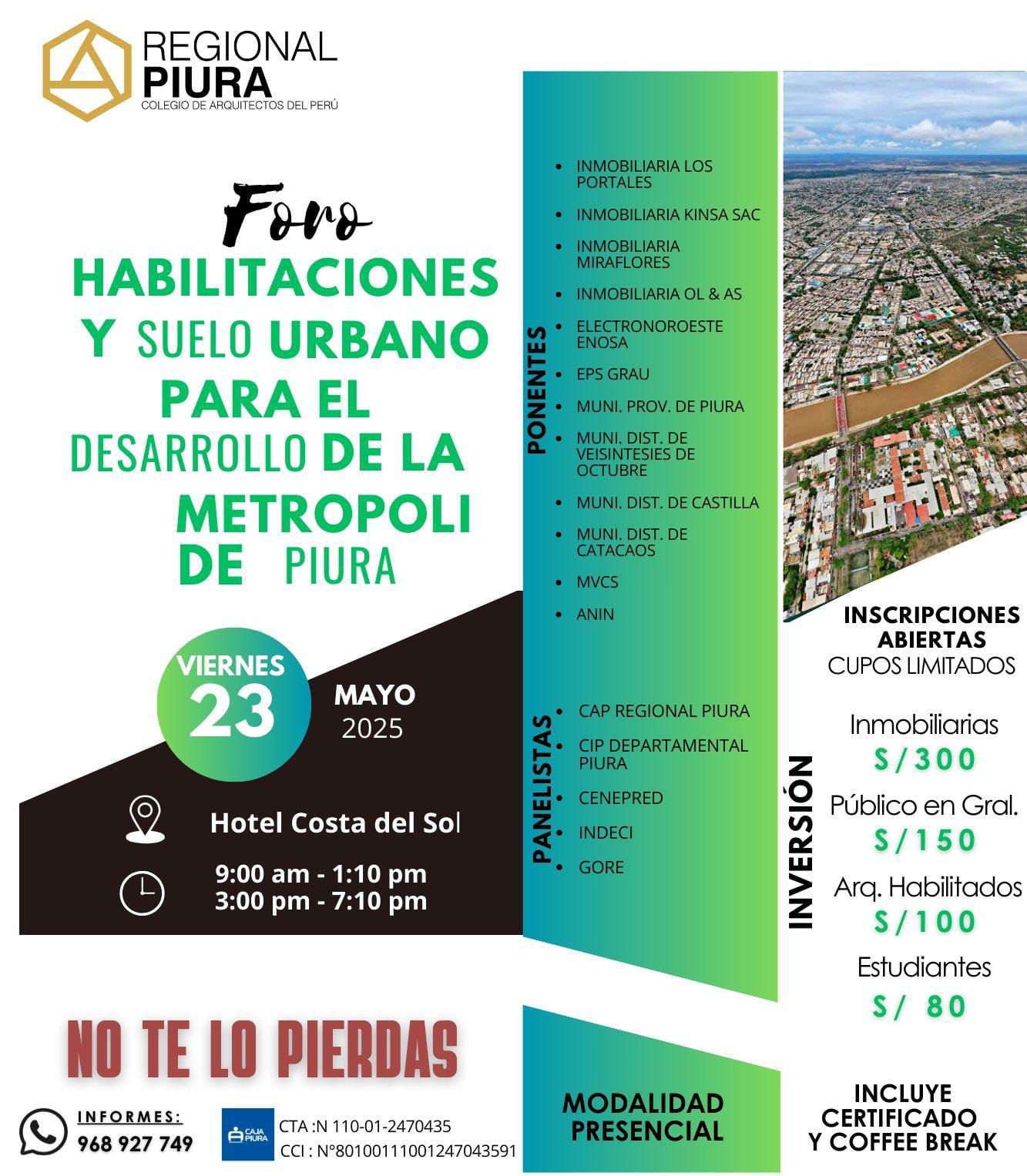 Colegio de Arquitectos de Piura invita a la ciudadanía a participar del foro “Habilitaciones y suelo urbano para el[…]